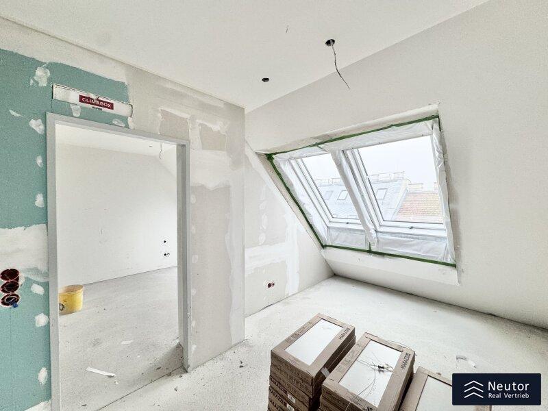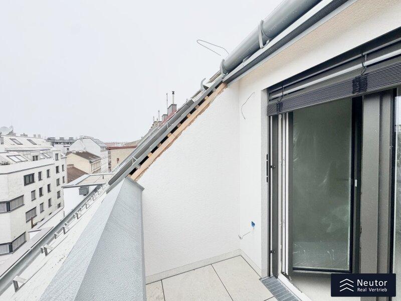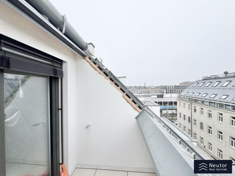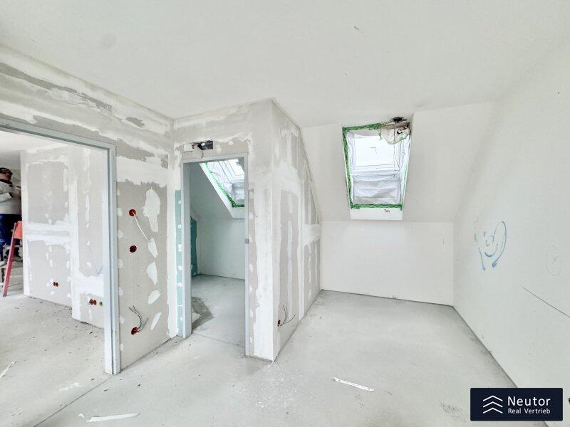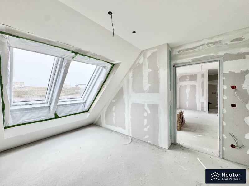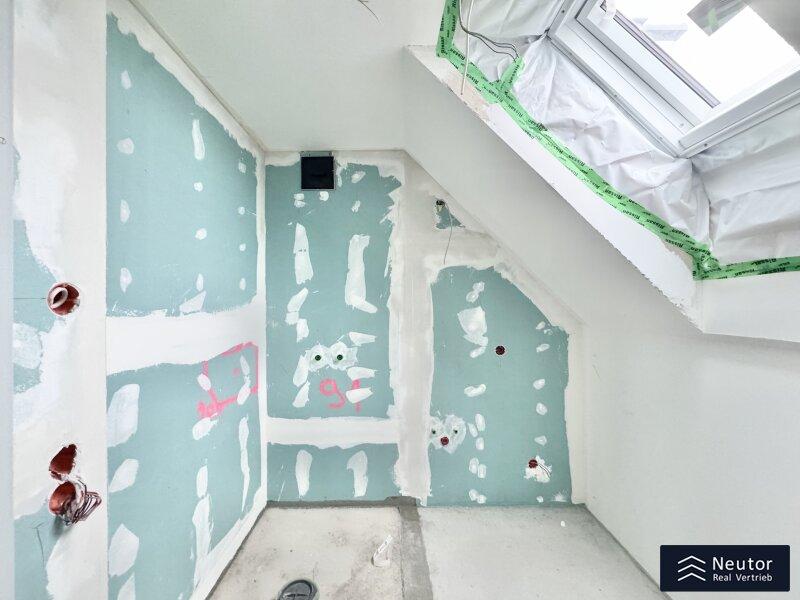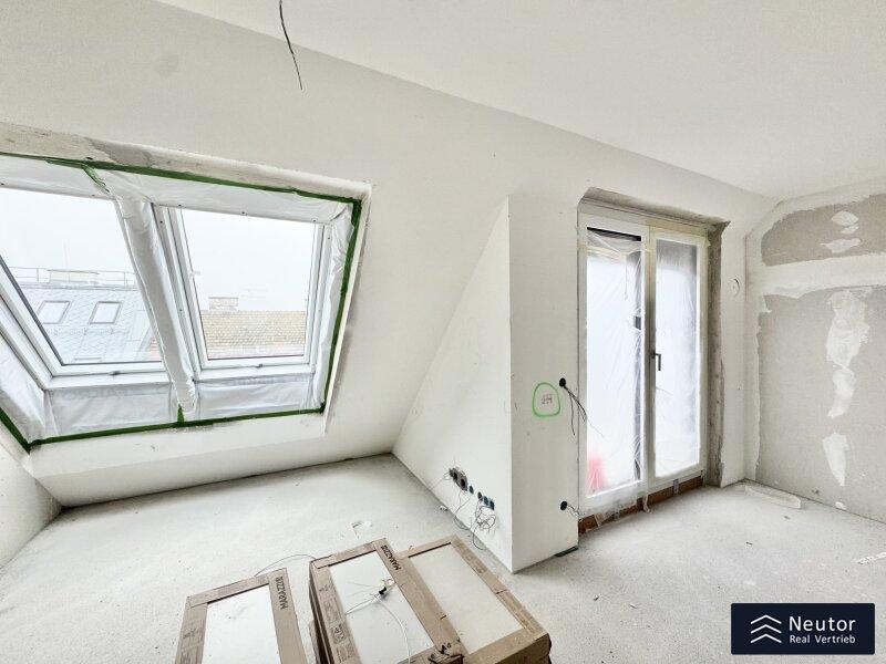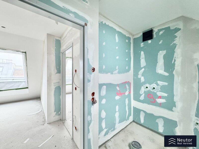 Beim Betreten empfängt Sie ein freundlicher Vorraum, der ausreichend Platz für Garderobe bietet und gleich zu Beginn mit einem separaten WC samt Handwaschbecken für zusätzlichen Alltagskomfort punktet.Vom Vorraum aus gelangen Sie direkt in die Kochnische sowie in den hellen, offen gestalteten Wohnbereich, der als zentraler Treffpunkt der Wohnung zum Entspannen, Kochen und Verweilen einlädt.Von hier aus haben Sie direkten Zugang zur Dachterrasse, die einen geschützten Außenbereich für entspannte Stunden im Freien bietet ideal für sonnige Nachmittage oder laue Abende.Ein besonderes Highlight ist das großzügige Schlafzimmer, das direkt an den Wohnbereich angrenzt. Es verfügt über einen integrierten Schrankraum und ein elegantes En-Suite-Badezimmer mit komfortabler Dusche, Tischlerverbau und elegant eingebautem Waschmaschinenanschluss durchdachter Wohnkomfort auf höchstem Niveau.Diese Dachgeschosswohnung überzeugt durch ihre moderne Raumaufteilung, hochwertige Ausstattung und eine helle, stilvolle Wohnatmosphäre ideal für Singles oder Paare, die ein besonderes Zuhause mit Qualität und Charakter suchen.