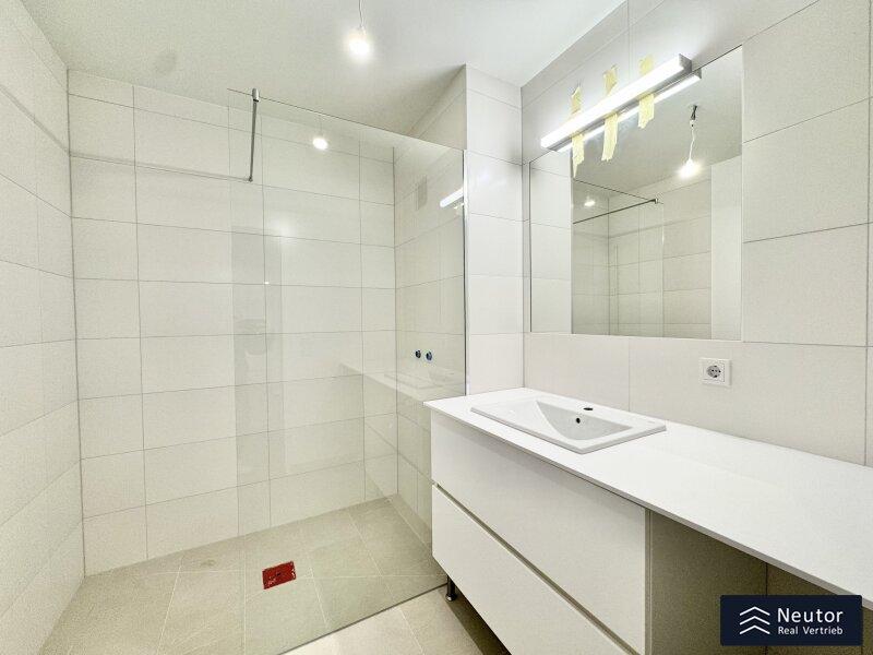 Ein weiteres Plus dieses exklusiven Neubaus: Den zukünftigen Bewohner:innen stehen Garagenstellplätze mit Elektroladestationen zur Verfügung. Für nachhaltige Mobilität ist ebenfalls gesorgt ein großzügiger Fahrradabstellraum mit der Möglichkeit, E-Bikes zu laden, ist Teil des durchdachten Gesamtkonzepts. Die Fertigstellung und Bezugsbereitschaft des Projekts ist für 01. Mai 2026 geplant. Die energieeffiziente Bauweise, Fußbodenheizung sowie eine moderne Haustechnik sorgen ganzjährig für ein angenehmes Wohnklima. Beheizt wird das Gebäude über eine nachhaltige Luftwärmepumpe, die in den Sommermonaten zusätzlich eine angenehme Temperierung ermöglicht. Ergänzt wird das durchdachte Energiekonzept durch eine Photovoltaikanlage am Dach, die zur umweltfreundlichen Stromerzeugung beiträgt und dabei hilft, die Stromkosten der Allgemeinteile zu optimieren. Im Badezimmer unterstreicht ein maßgefertigter Unterbauschrank in hochwertiger Tischlerarbeit den hohen Ausstattungsstandard des Projekts.