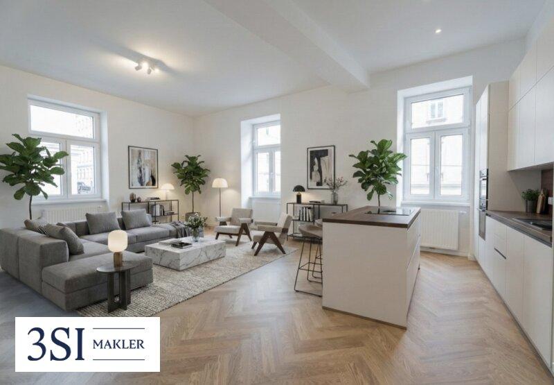 Im Zuge der Sanierung wurde besonderer Wert auf Qualität, Komfort und zeitloses Design gelegt. Die Wohnung ist mit Fußbodenheizung, edlem Eichen-Fischgrätparkett in den Wohnräumen sowie einer hochwertigen, modernen Badausstattung versehen. Die offene Wohnküche schafft gemeinsam mit den großen Fensterflächen ein helles und einladendes Wohnambiente.