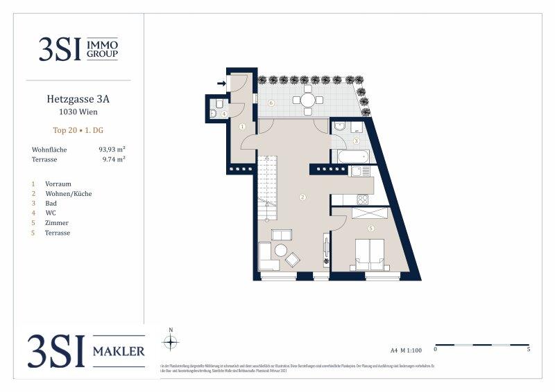 Diese großzügige Dachgeschoss-Maisonette bietet auf rund 93,93 m² Wohnfläche ein modernes und komfortables Wohngefühl über zwei Ebenen. Lichtdurchflutete Räume, eine elegante Galerie sowie eine sonnige Terrasse mit ca. 9,32 m² schaffen ein besonderes Wohnambiente über den Dächern Wiens und unterstreichen den hohen Anspruch an Stil und Wohnqualität.
