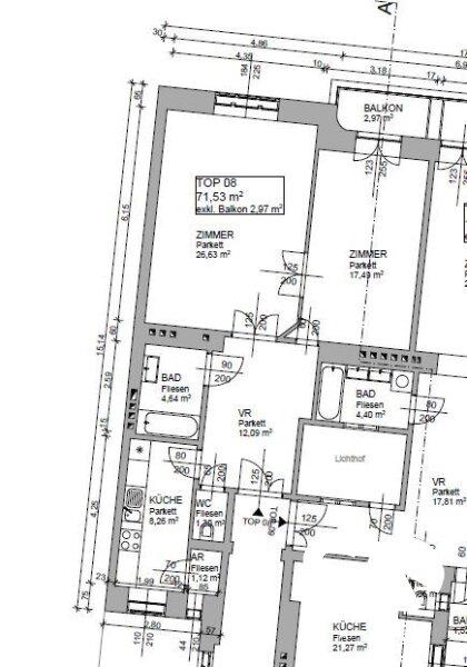 Die rund 71,35 m² große Wohnung bietet ein angenehmes und komfortables Wohnambiente. Sie verfügt über zwei gut geschnittene Zimmer, die sich ideal als Wohn- und Schlafzimmer eignen. Der kleine Balkon ist in den ruhigen Innenhof ausgerichtet und lädt zum Entspannen ein.