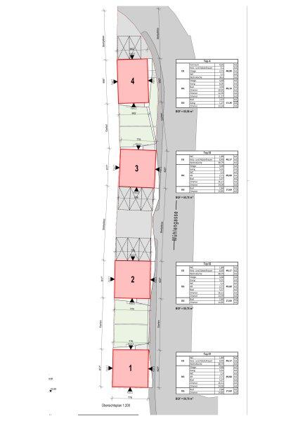 • Vier Einfamilienhäuser mit Garten, Terrassen und Dachterrassen