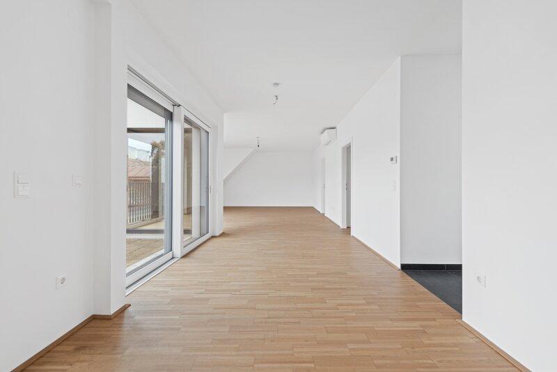 Wohn-/Esszimmer mit Ausgang zur Terrasse und Dachterrasse