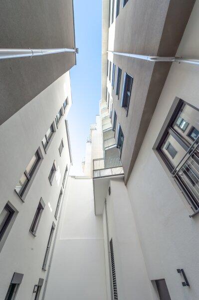 Zur befristeten Vermietung gelangt diese komplett ruhig gelegene, toll aufgeteilte und sehr hochwertig ausgestattete ca. 96 m² große Neubauwohnung mit Loggia im 1. Stock eines Neubaus in absoluter Bestlage im 06. Wiener Gemeindebezirk, unmittelbar beim Haus des Meeres gelegen.