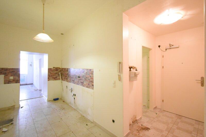Die Wohnung befindet sich in einem renovierungsbedürftigen Zustand und wird wie sie liegt und steht verkauft.