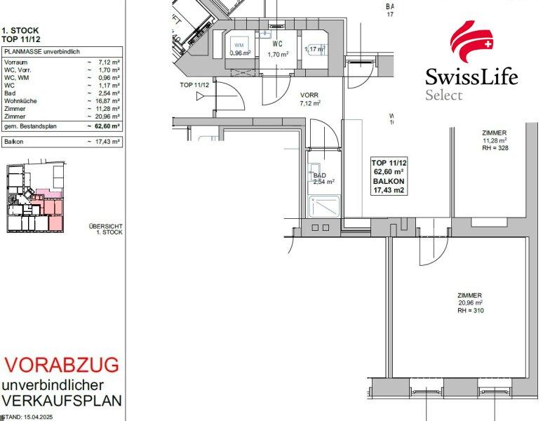 Die Raumaufteilung der Wohnung Top 11-12 gestaltet sich wie folgt: