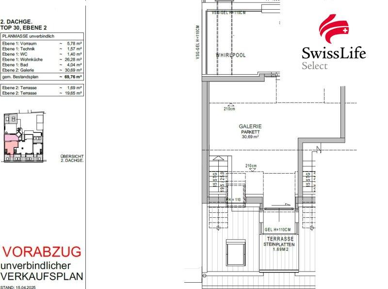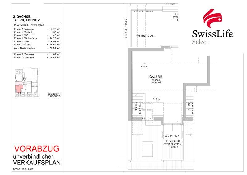 Die Raumaufteilung der Wohnung Top 30 gestaltet sich wie folgt: