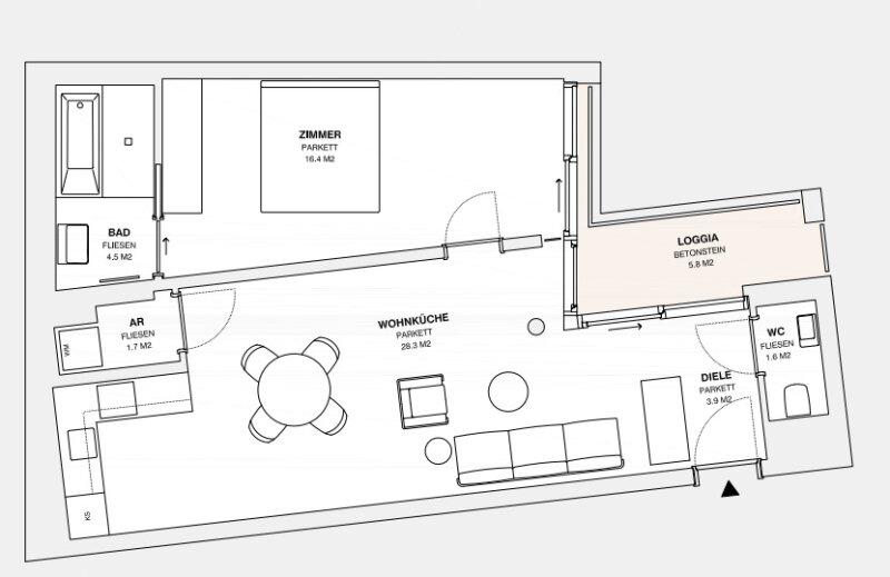 ++ Bei den hier dargestellten Fotos handelt es sich um ähnliche, bereits fertiggestellte Wohnungen des selben Projektentwicklers. Aktuelle Bilder des Projektes MOLLARD50 werden nächste Woche nachgereicht. Der dargestellte Plan/Grundriss ist der der tatsächlichen Wohnung +++