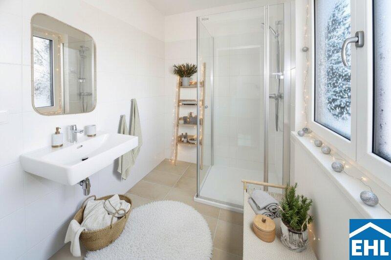 Drei angenehm ruhige Zimmer bieten flexible Nutzungsmöglichkeiten Schlafräume, Kinderzimmer, Arbeitszimmer oder Gästezimmer. Zwei moderne Bäder ergänzen den durchdachten Grundriss und sorgen für Komfort im Alltag.