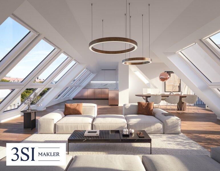 Diese exklusive Dachgeschoss-Maisonette mit traumhafter Dachterrasse ist das Highlight des Wohnprojekts. Auf knapp 184m² m² Wohnfläche und mit 4 großzügigen Räumen setzt es neue Maßstäbe in Architektur und Stil. Hier, hoch über den Dächern Wiens, vereinen sich historische Eleganz und futuristischer Luxus zu einem einzigartigen Wohnerlebnis, das höchsten Komfort bietet.