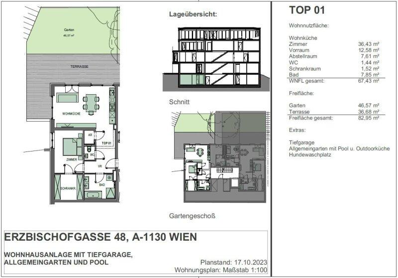 Die betreffende Wohnung befindet sich im Gartengeschoß der Liegenschaft und bietet eine Wohnfläche von ca. 67 m² plus Terrasse und einen eigenen Garten.