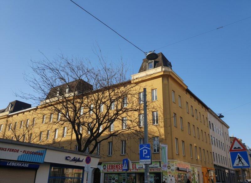 Das imposante Gebäude am Platz versprüht noch den Charme des Wiener Jahrhundertwende-Altbaus , ein LIFT wurde 1994 im Zuge des Dachgeschossausbau eingebaut.