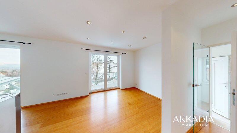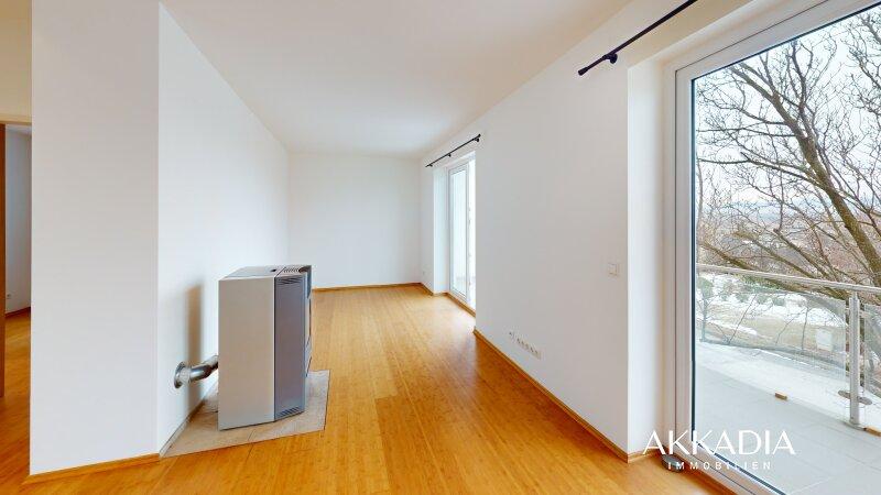Das Wohngeschoss im 1. Stock bildet den zentralen Wohnbereich dieses Einfamilienhauses und überzeugt durch helle Räume sowie eine angenehme Wohnatmosphäre. Vom Wohnzimmer aus sind Balkon und Terrasse direkt zugänglich und bieten aufgrund der erhöhten Lage einen Fernblick auf den Schneeberg sowie auf die umliegende Landschaft. Die ruhige Lage in Hornstein sorgt für ein entspanntes Wohnumfeld.