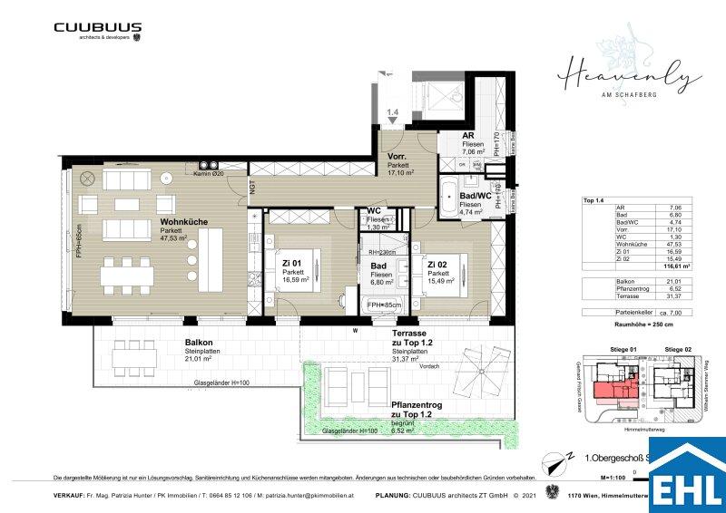 Mitten in der Natur, mit sensationellem Blick über die Stadt, gleich neben den Weinreben so lässt es sich leben. Direkt am Schafberg entsteht, aufgeteilt auf 2 Häuser, das Wohnprojekt HEAVENLY AM SCHAFBERG. Der Neubau am Himmelmutterweg 2325 umfasst 11 exklusive Eigentumswohnungen mit jeweils 67 bis 190 m2 Wohnfläche. Als Eckgrundstück in einer ruhigen Sackgasse gelegen, findet man hier Entspannung in Grünruhelage. Durch den Wohnungsmix von 2 bis 6 Zimmern werden im HEAVENLY AM SCHAFBERG sowohl Singles mit gehobenen Ansprüchen als auch Familien angesprochen. Großzügige Glasfronten sorgen für helle, freundliche Wohnatmosphäre und lichtdurchflutete Räume. Weitläufige Freiflächen (Garten, Balkon oder Terrasse) machen das Projekt zum absoluten Wohntraum.