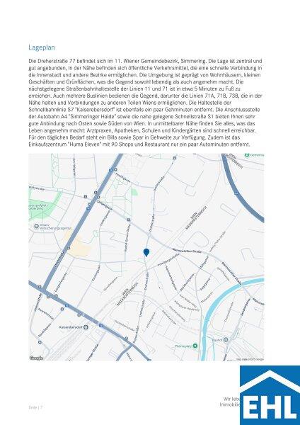 Die Adresse Dreherstraße 77 befindet sich im 11. Wiener Gemeindebezirk, Simmering. Die Lage ist zentral und hervorragend angebunden: In der Nähe befinden sich Straßenbahnhaltestellen der Linien 11 und 71, die in etwa 5 Minuten zu Fuß erreichbar sind. Mehrere Buslinien (z.B. 71A, 71B, 73B) sorgen für schnelle Verbindungen in die Innenstadt und andere Bezirke. Die Schnellbahnlinie S7 Kaiserebersdorf ist ebenfalls nur wenige Gehminuten entfernt. Die Autobahn A4 (Simmeringer Haide) sowie die Schnellstraße S1 bieten eine schnelle Anbindung nach Osten und Süden Wiens.