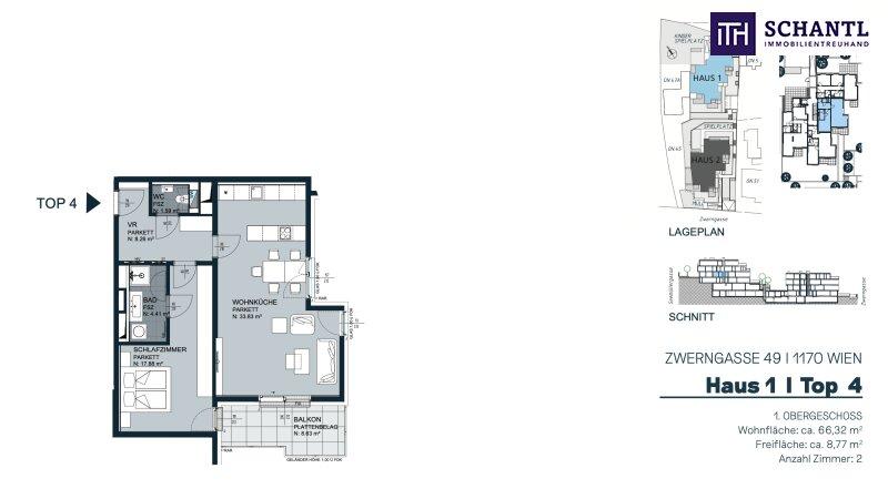 66,32m² Wohnfläche | 8,77m² Freifläche | 2 Zimmer | Provisionsfrei
