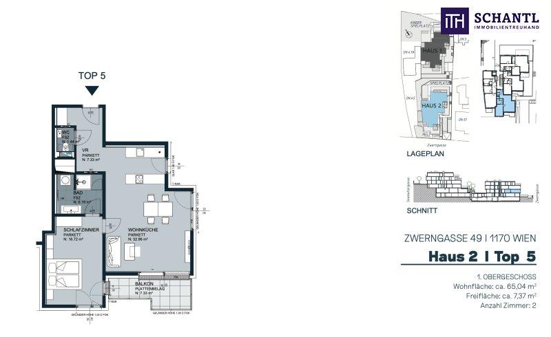 65,04m² Wohnfläche | 7,37m² Freifläche | 2 Zimmer | Provisionsfrei