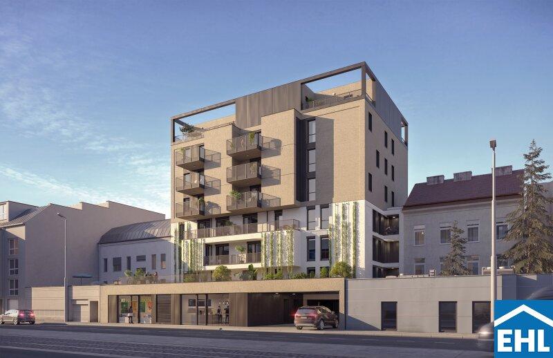 Auf einem rund 1.100 m² großen Grundstück entsteht ein attraktives Wohngebäude mit 2 integrierten Geschäftslokalen. Ein optimaler Mix aus 2-, 3- und 4-Zimmer-Wohnungen verteilt sich auf 40 Einheiten mit perfekten Grundrissen in 7 Etagen, für Anleger und Eigennutzer.