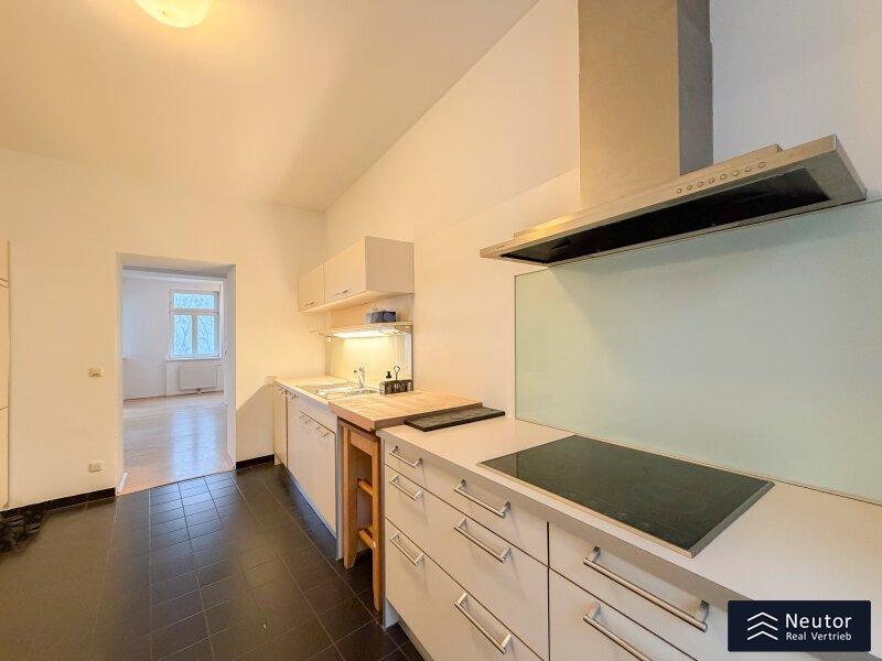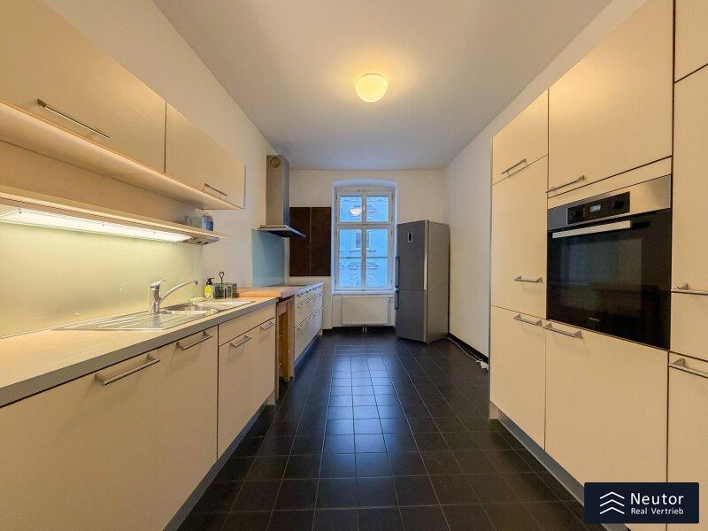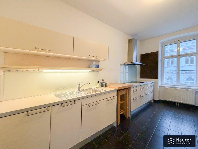 Diese stilvolle Altbauwohnung in ruhiger Innenhoflage verbindet klassischen Charme mit modernem Wohnkomfort. Ein Lift sorgt für einen bequemen Zugang und unterstreicht den gehobenen Standard. Beim Betreten gelangen Sie in den kompakten Vorraum, welcher mittels Raumtrenner vom großzügigen und lichtdurchfluteten Wohnzimmer abgetrennt istl. Die weitläufige Fensterfront sorgt für viel Tageslicht und eine offene, einladende Atmosphäre. Hier finden sowohl eine komfortable Wohnlandschaft als auch ein Essbereich mühelos Platz. Vom Wohnzimmer gelangen Sie direkt auf den typisch wienerischen Balkon, welcher als Pawlatsche ausgebildet ist. Ein idealer Ort, um im Freien zu entspannen und die Ruhe zu genießen. Ein zentral gelegener Flur führt zu den weiteren Räumen: Ein separates WC mit Handwaschbecken bietet zusätzlichen Komfort, während das Badezimmer mit Badewanne, Handwaschbecken und Waschmaschinenanschluss alle Annehmlichkeiten für den täglichen Gebrauch bereithält. Ein Einbauschrank am Gang sorgt für praktischen Stauraum. Am Ende des Flurs befinden sich zwei flexibel nutzbare Zimmer, ideal als Schlaf-, Kinder-, oder  Arbeitszimmer. Beide Räume überzeugen durch ihre angenehme Größe und vielseitige Einrichtungsmöglichkeiten. Die großzügige Küche ist mit hochwertigen Elektrogeräten ausgestattet, bietet viel Arbeitsfläche und Stauraum und eignet sich sowohl für den täglichen Gebrauch als auch für ambitionierte Hobbyköche. Klassische Altbaudetails treffen auf moderne Ausstattung und schaffen ein harmonisches Gesamtbild, ein besonderes Zuhause mit hoher Wohnqualität.