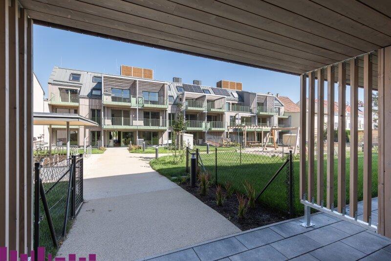 Familienfreundlich: Die Umgebung bietet viel Raum zum Leben und Spielen, mit Spielplätzen, Urban Gardening und Obstgärten, die Begegnung und Entfaltung fördern.
