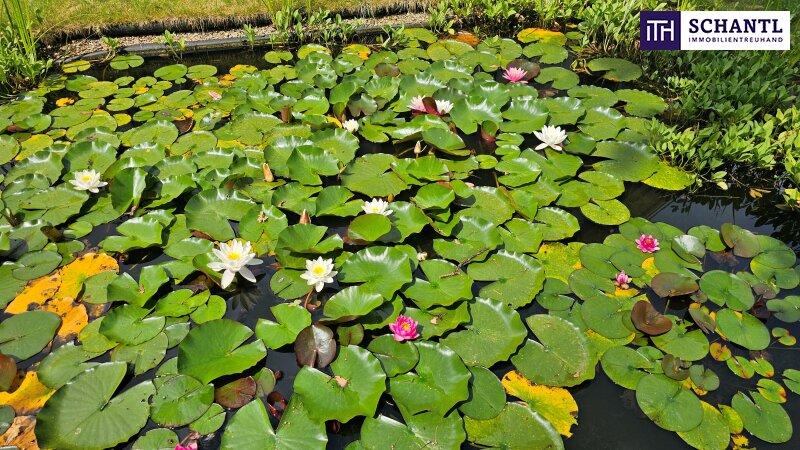 Sanftes Wasserplätschern, exotische Vibes und Momente, die wie aus einem Bali-Retreat wirken. Das Bali-Haus mit Blick auf den Seerosenteich schafft eine Atmosphäre tiefer Ruhe, begleitet von stimmungsvoller Musik über die Sonos-HiFi-Anlage. Ein Platz, an dem die Zeit langsamer vergeht.