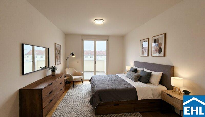 Die möblierten Bilder wurden mittels KI virtuell möbliert um eine bessere Vorstellung der Einrichtungsmöglichkeiten zu vermitteln.