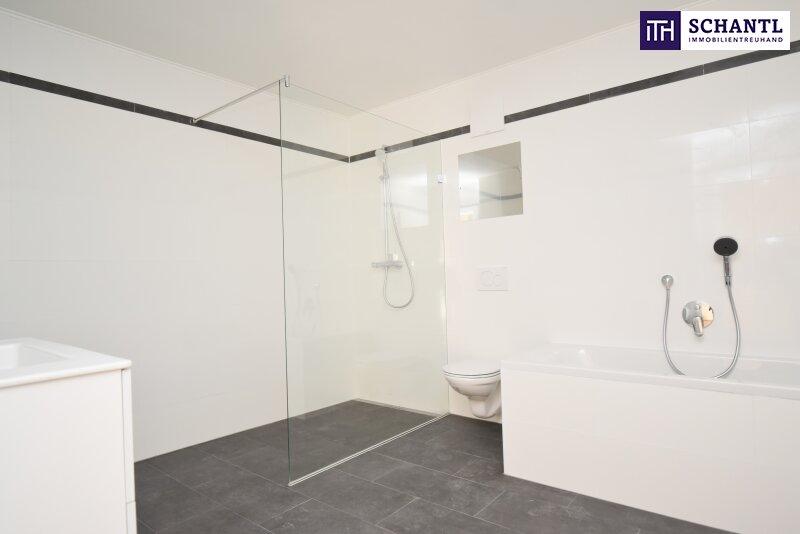 • ein luxuriöses Badezimmer, hochwertige Ausstattung und edle Materialien, mit einer Badewanne, einer barrierefreien Dusche, Handtuchtrockner