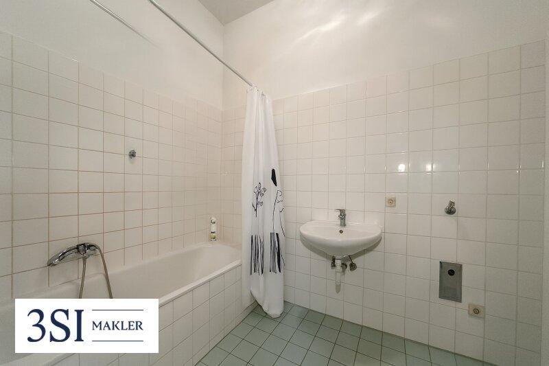 Vom Vorraum der Wohnung aus, gelangt man in das Badezimmer mit Wanne, das separate WC, sowie in den ruhigen Innenhof gelegene Küche.