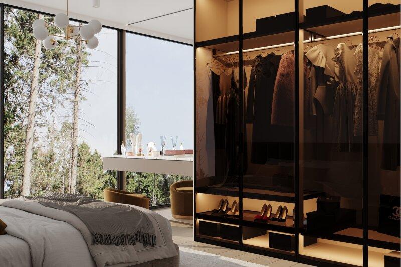Dachgeschoss: Das Dachgeschoss beherbergt ein exklusives Master-Bedroom mit eigenem Badezimmer. Von hier gelangen Sie direkt auf die private Dachterrasse, die mit einem wunderbaren Blick auf die umliegende Natur punktet.