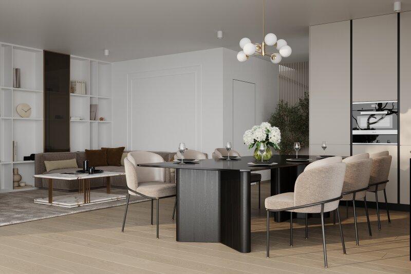 • Eichenparkettböden und moderne Feinsteinzeugfliesen