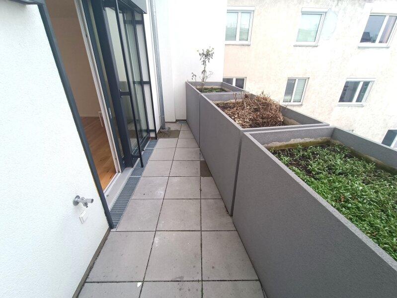 Der Wohnbereich ist durch eine Schiebetüre vom Vorraum abgetrennt und bietet auf einer Fläche von rund 23,81 m² viel Platz für die persönliche Einrichtung und Gestaltung. Der moderne Küchenverbau bietet alles was Sie für das entspannte Kochen benötigen - Ceran Kochfeld, Dunstabzug, Geschirrspüler, Backofen und Kühlschrank mit separatem Gefrierfach lassen keine Wünsche offen. Von hier aus erreichen Sie ebenso den Balkon, welcher mit einer Fläche von rund 6,51 m² einen gemütlichen Rückzugsort bietet. Die Ausrichtung in den Innenhof sorgt für eine angenehme Ruhelage.