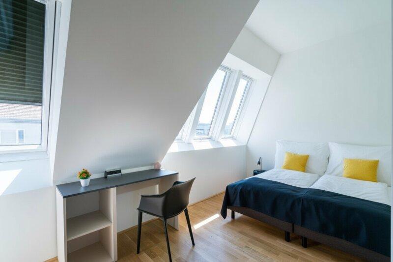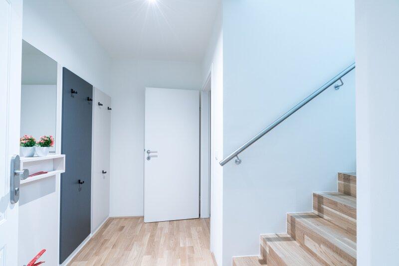 Die Wohnung wird über den Vorraum im 1. Dachgeschoss betreten, der ausreichend Platz für eine Garderobe bietet und darüber hinaus auch einen Abstellraum.