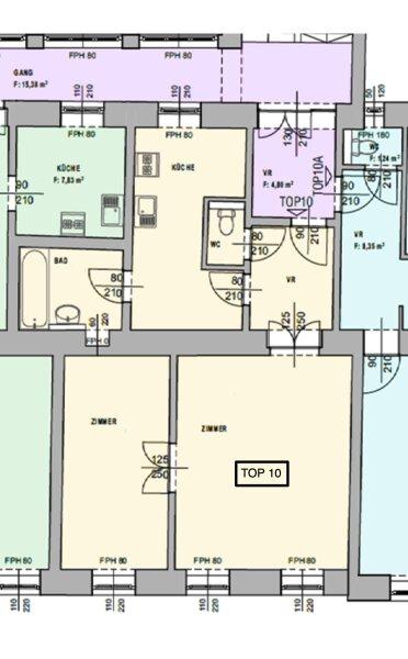 Die bezugsfertige Wohnung bietet einen Vorraum, ein Wohnzimmer, ein Schlafzimmer, ein separates WC, einen extra Küchenbereich mit Gangfenster und voll ausgestatteter Einbauküche sowie ein Badezimmer.