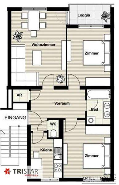 Raumaufteilung (ca. 78 m² Wohnfläche inkl. Loggia)
