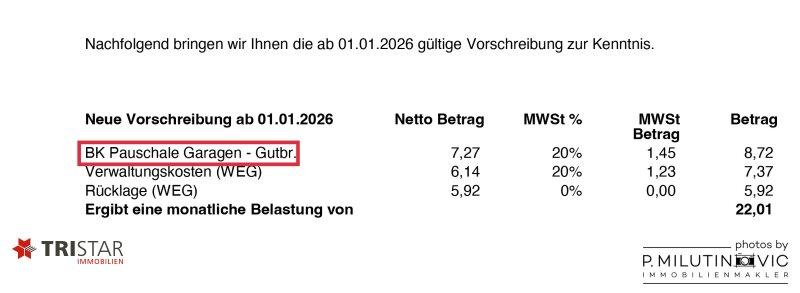 KFZ-Stellplatz : EUR 25.000,- (Verhandlungsbasis)