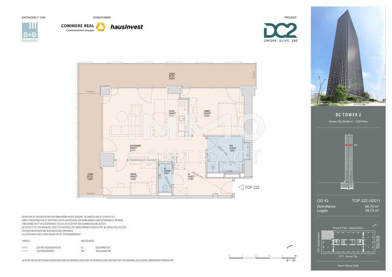 Der DC2 Tower zählt mit 52 Stockwerken und 314 hochwertigen Wohnungen ab dem 32. Obergeschoß zu den spektakulärsten Wohnprojekten des Landes. Die Wohnungsgrößen von ca. 30 bis 260 Quadratmetern bieten ein bewusst vielfältiges Angebot von intelligent geplanten Einzimmerstudios über komfortable Familienwohnungen bis hin zu großzügigen Fünfzimmer-Maisonettewohnungen. Jede Einheit überzeugt durch durchdachte Grundrisse, hohe Wohnqualität und großzügige Fensterflächen, die den Blick nach außen inszenieren und die Stadt Teil des Wohnraums werden lassen. Loggien, Balkone und Freiräume erweitern den Wohnbereich und machen die beeindruckende Höhe unmittelbar erlebbar.
