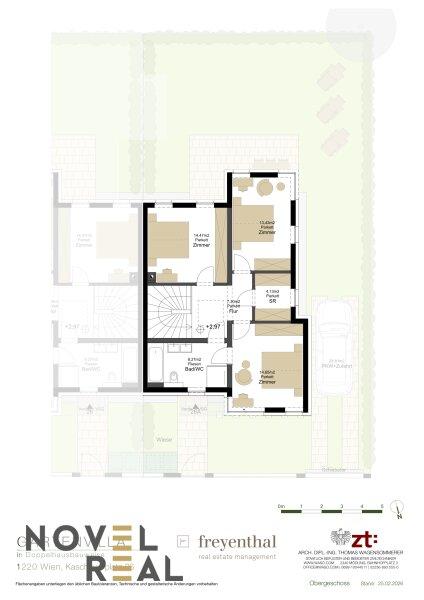 Ihre privaten Rückzugsorte umfassen drei perfekt geplante Zimmer à 14 m², die reichlich Platz für Stauraum bieten. Ein Zimmer ist als Master Bedroom mit einem integrierten Bad und einem Schrankraum ausgestattet und gewährleistet Privatsphäre und Komfort.