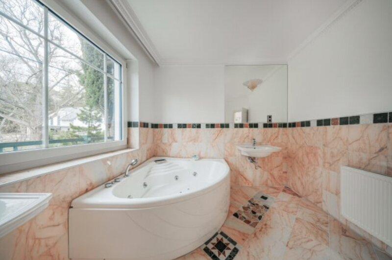 Edles Echtholzparkett (Ahorn, Kirsche, Eiche), maßgefertigtes Vollholz-Treppenhaus, offener Kamin für Gemütlichkeit. Wellness-Bereich mit Sauna und Whirlpoolraum. Vier luxuriöse Bäder und fünf Toiletten. Energieeffizient: Solaranlage für Warmwasser, Gas-Brennwertheizgerät mit 300 l Warmwasserspeicher und 1.000 l Pufferspeicher, Radiatoren & Fußbodenheizung (in Fliesen-/Marmor-/Granitbereichen), Wasserenthärtung, automatisierte Bewässerung und neueste Pooltechnik. Außenliegende, bruch- und temperaturresistente Rollläden, Lift-Vorbereitung (Schacht vorhanden). Höchste Sicherheit durch moderne Alarm- und Kameraüberwachung.