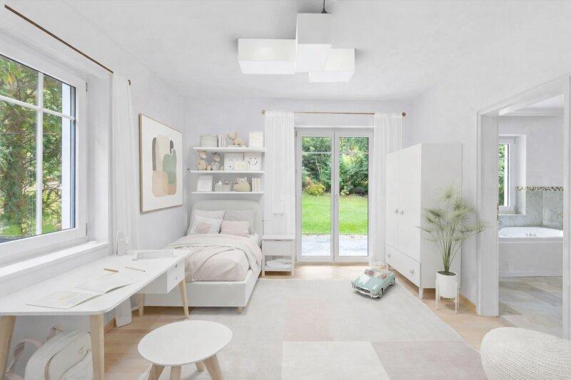 Dieses Haus verbindet harmonisch Familienleben, Homeoffice und Rückzug: Klare Trennung von Kinder-, Gäste- und Arbeitsbereichen, offene, helle Räume fördern Kommunikation und Privatsphäre zugleich. Architektur nach Norden geschützt, nach Süden geöffnet optimales Licht- und Klimakonzept mit Fenstern in alle Himmelsrichtungen für wechselnde Stimmungen und Naturblick.