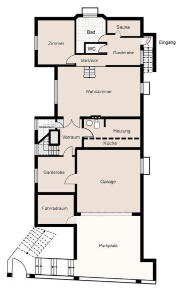 • Untergeschoss Eigenständig & vielseitig: Separate Wohneinheit mit Vollküche, Inhouse-Doppelgarage (mit Ölabscheider, Starkstrom und direkter Verbindung zum Mantelraum), Bad, Massage-/Whirlpoolraum & WC, Party-/Wohnraum mit Küchenanschluss, Sauna, Technik- und Wirtschaftsräume, Werkstatt mit Starkstrom. Insgesamt 6 Schlafzimmer und 3 Wohnzimmer für außergewöhnlichen Raum.