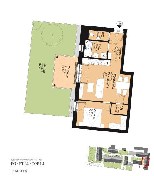 Alle Wohnungen werden schlüsselfertig übergeben, d.h. alle Sanitäranlagen, Fliesen und Parkettböden sind im Kaufpreis inkludiert. Details über die Ausstattung der Wohnungen entnehmen Sie gerne der Leistungsbeschreibung im Booklet.