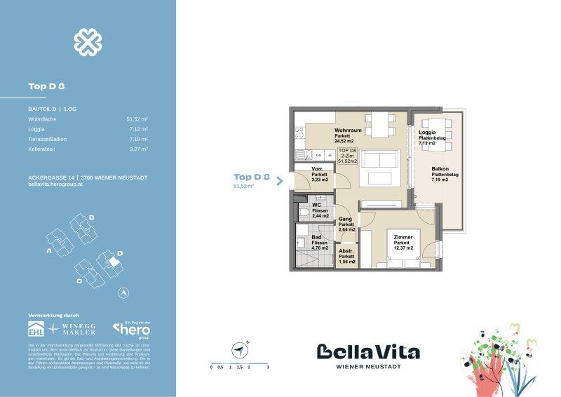 Das Wohnbauprojekt Bella Vita nahe des verzaubernden Wiener Neustädter Kanals steht für "schönes Leben" und das wird hier möglich. Im mediterranen Stil die Außen- und Allgemeinflächen: Gepflasterte Wege in Muschelkalk, Lauben und Schaukeln vermitteln Leichtigkeit, Gemütlichkeit und Wohlgefühl. Im Inneren überzeugende Raumaufteilung, stimmige Architektur, hochwertige Ausgestaltung. Und die Nachhaltigkeit stets im Blick, u.a. durch PV-Anlagen zur Energiegewinnung und einem Dachgeschoß in Holzhybridbauweise.
