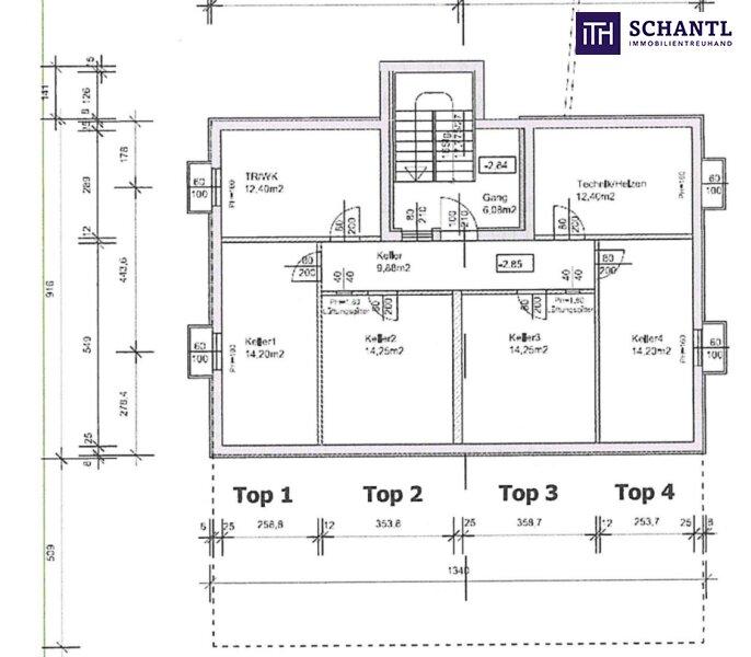 • ein großzügiges Kellerabteil mit 14,25 m² bietet praktischen Stauraum. Für Ihren Komfort sind zwei KFZ-Abstellplätze (Nr. 07 & 11) im Eigentum inkludiert