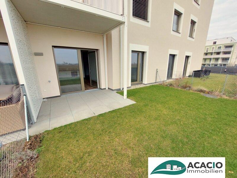 Diese topmoderne Wohnung im Erdgeschoß mit ca. 51,8m² Wohnfläche und ostseitigem Garten verfügt über eine überdachte Terrasse mit Weitblick ins Grüne.