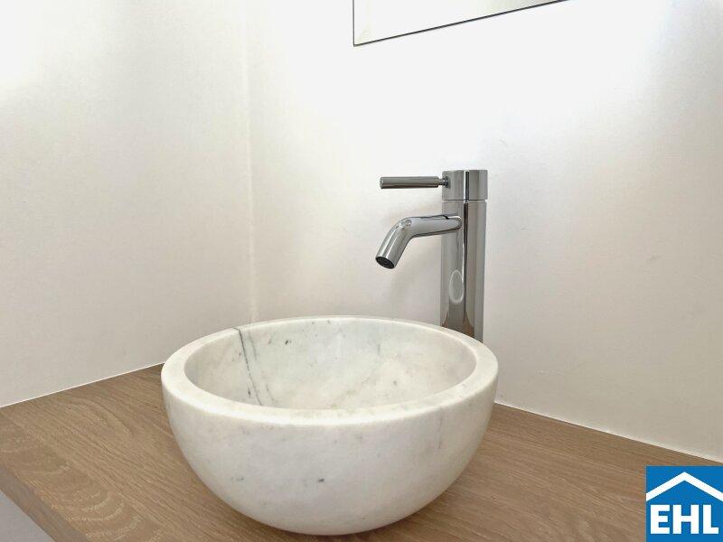 • Hochwertigste Materialien von der Beleuchtung über Armaturen bis zum Bodenbelag