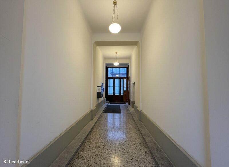 Das Stiegenhaus wird derzeit umfassend generalrevitalisiert und neu ausgemalt. Auch die Fassade des Gebäudes wird aktuell saniert, wodurch sich das gesamte Erscheinungsbild des Hauses deutlich aufwertet. Die dargestellten Visualisierungen der Fassade wurden KI-gestützt erstellt und dienen ausschließlich der Veranschaulichung des geplanten Erscheinungsbildes nach Abschluss der Sanierungsarbeiten. Abweichungen zur tatsächlichen Ausführung sind möglich.