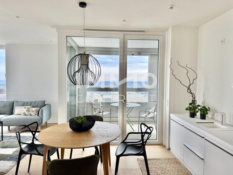 Im Wohnturm befinden sich rund 300 Wohnungen in unterschiedlichen Größen, aufgeteilt in vier Ausstattungskategorien. Die wenigen noch verfügbaren Einheiten verfügen über 2-4 Zimmer und sind zwischen ca. 46 m² - ca. 215 m² groß. Sämtliche der verfügbaren Eigentumswohnungen befinden sich im 22. 32. Stockwerk und überzeugen mit der hochwertigen Ausstattungslinie Sky Living (22. - 30. OG), wobei sich die Penthouse-Etagen (31. - 32. OG) nochmals in Ihrer Beschaffenheit abheben.
