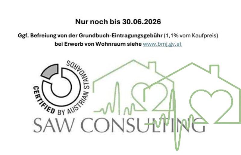Nur noch bis 30.06.2026 - ggf. Befreiung von der Grundbuch-Eintragungsgebühr (1,1% vom Kaufpreis) bei Erwerb von Wohnraum siehe www.bmj.gv.at
