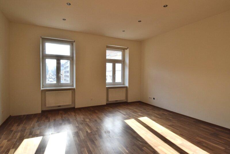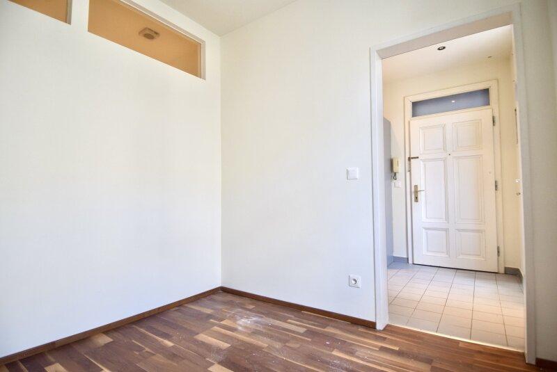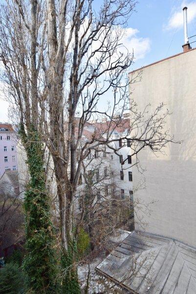 Das sonnige Wohnzimmer bietet einen schönen Ausblick, darüber hinaus verfügt diese Wohnung über ein hofseitig gelegenes Schlafzimmer, einen Vorraum mit Küchenzeile und ein Badezimmer mit Wanne und WC.