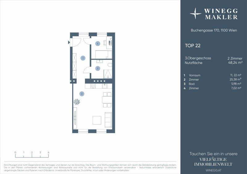 Das verkaufsgegenständliche Objekt befindet sich im 3. Stock und hat eine Wohnfläche von ca. 48 m2.